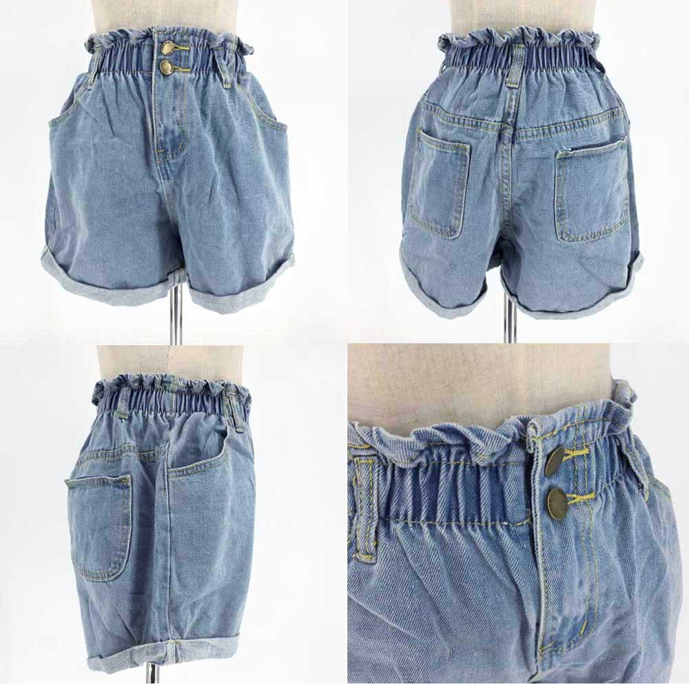 ショーパン デニム/美脚 デニム/ジーンズハイウエストデザインで脚長効果抜群のデニム生地ショートパンツウエストゴムなので楽ちんにスタイリング、サッと履けてすぐ出掛けられる裾元折り返しがポイントとなり、太ももを華奢に見せてくれる美シルエットカラー:ブルー素材:綿100%サイズ:S/M/L着丈:約35/36/37cm股下丈:約5/5/5cmウエスト(ゴム仕様):約54-78/56-82/58-86cmヒップ:約100/104/108cmわたり:約56/58/60cm裏地:なし 伸縮性:なし 透け感:なし生産国:中国すべて平置きサイズです。
