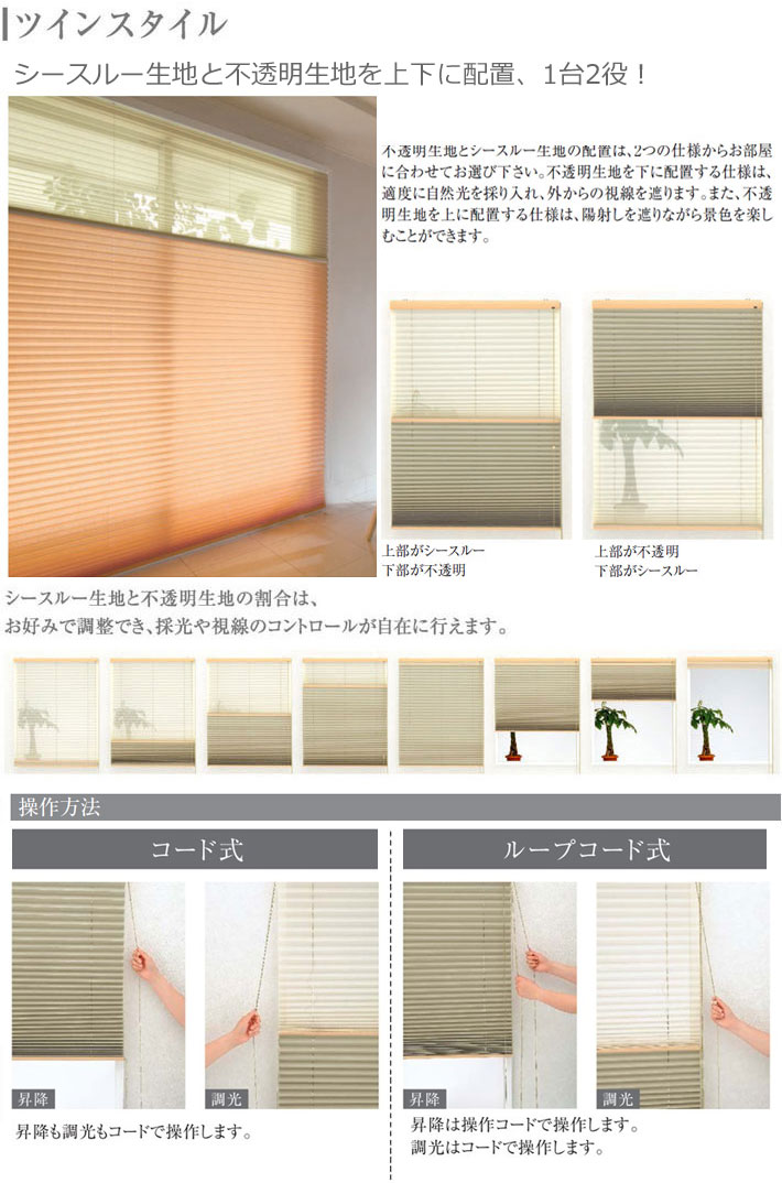 ニチベイ製 プリーツスクリーンもなみ25/なごみ2/ツインスタイル ループコード式/サイズオーダー