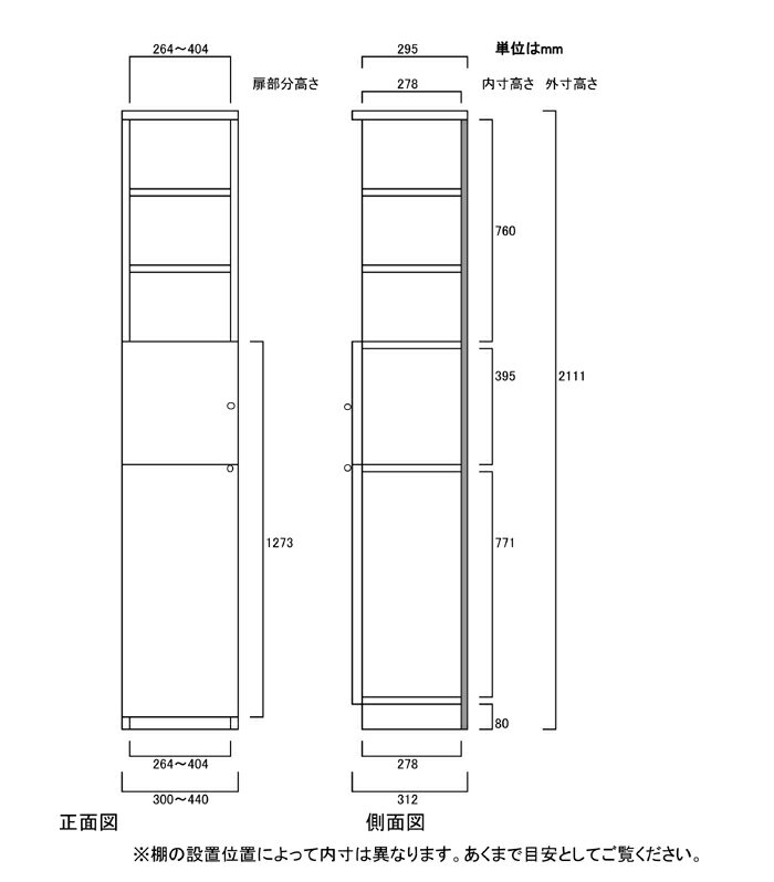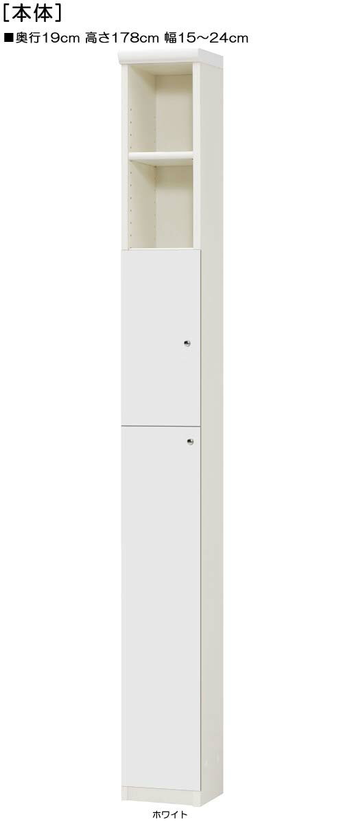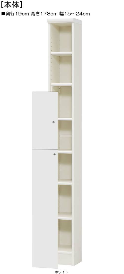 下部扉スリム収納高さ178cm幅15〜24cm奥行19cm上下片開き 扉高さ127.3cm 扉付洗面所ラック スリム収納