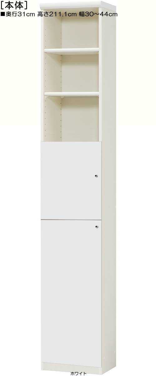 下部扉オーダー壁面収納高さ211.1cm幅30〜44cm奥行31cm上下片開き 扉高さ127.3cm 扉付書斎収納 オーダー壁面収納
